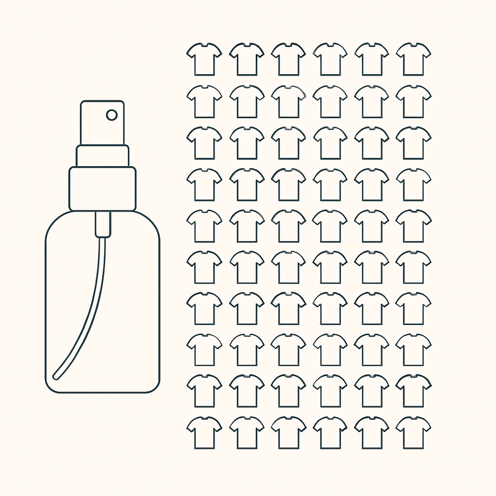 Each 50ml bottle delivers 350–500 fine mists. That’s 60–100 refreshed shirts without a single wash cycle.